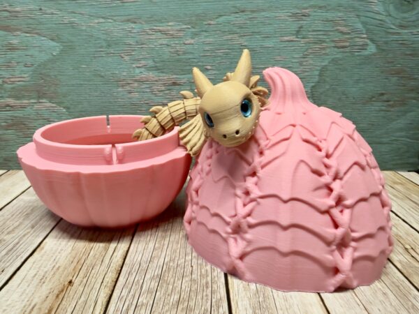 Discover the magic within! This enchanting dragon egg opens to reveal your very own articulated baby dragon nestled inside, waiting to hatch into your world.